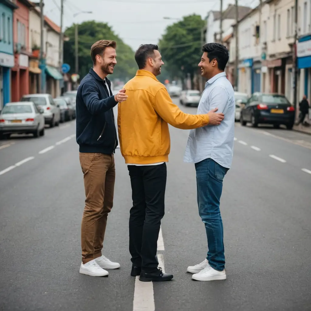صوره كامله رجلان يسلمان علي بعضهما في منتصف الطريق