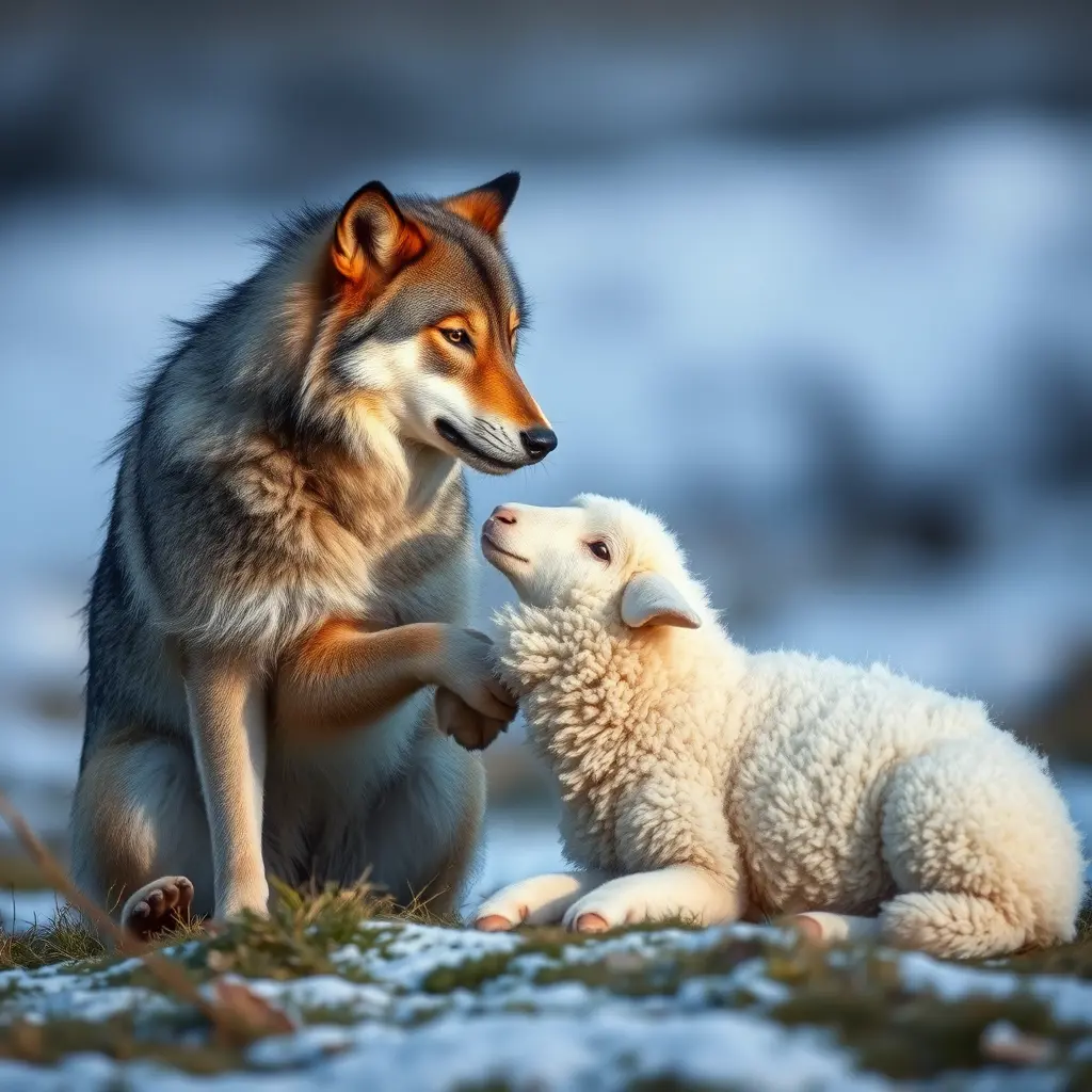 ذئب يلعب معه خروف