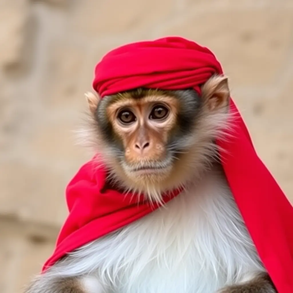 صوره قرد لابس  غتره حمرا