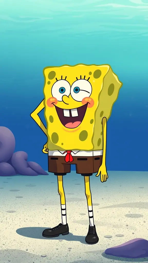 سبونج لوب ب طابع انمي معضل  و جسمه طويل ب شكل بشري ب جسم بشري