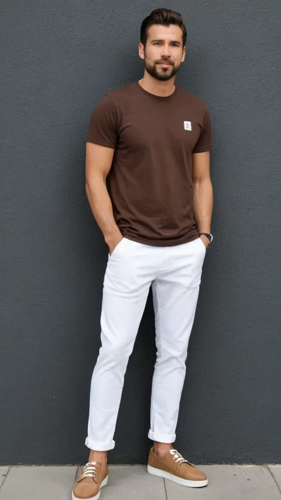 صوره رجل يلبس تشيرت جوزي وبنطال ابيض وحذاء جوزي
