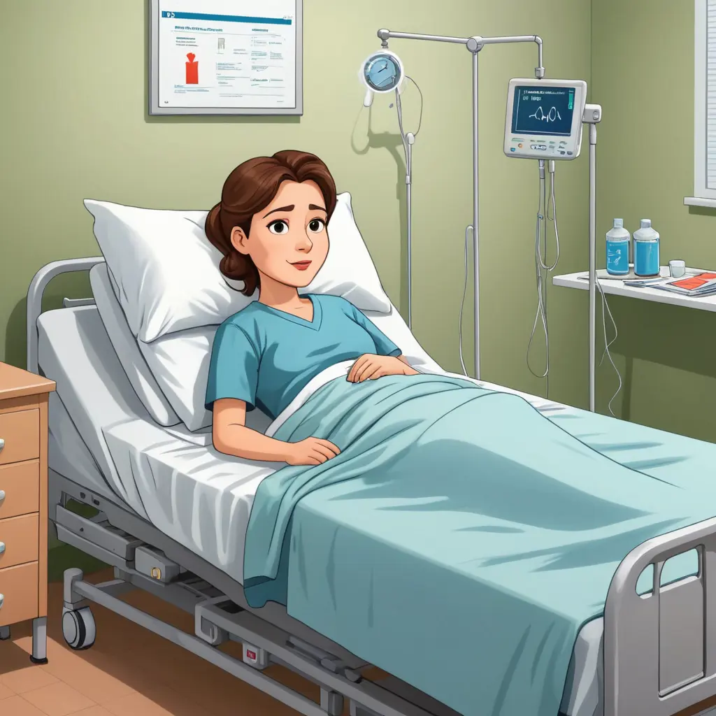 أم على سرير المستشفى مريضة(صورة كرتونية)على هيئة كرتون
