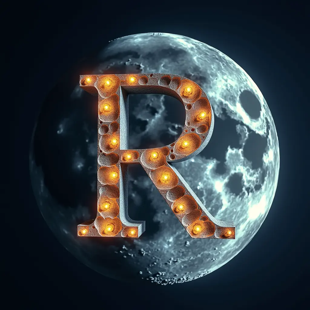 حرف R على القمر بشكل جميل