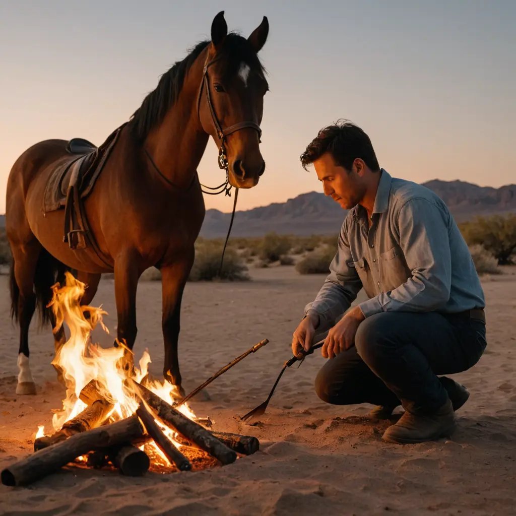 صوره رجل في الصحراء يشعل نار جنب شاص