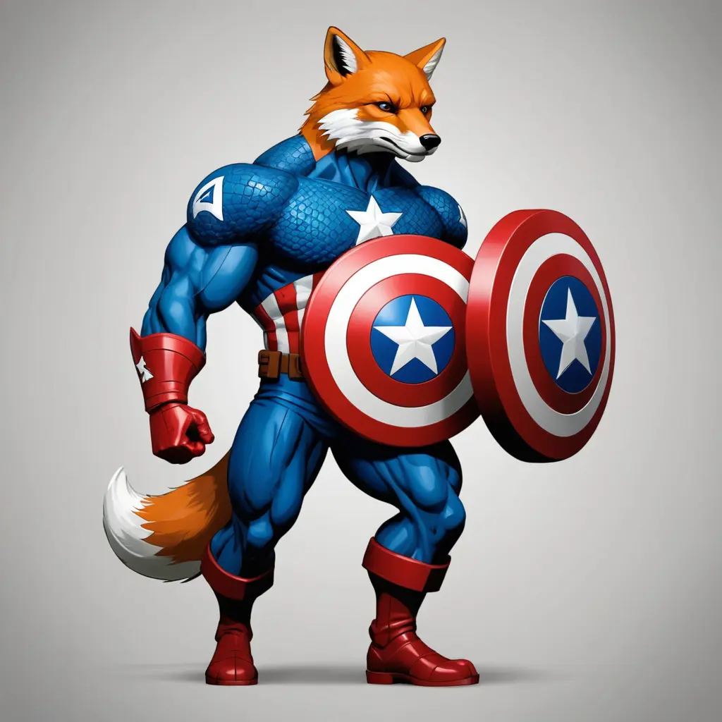 ثعلب يحمل اوزان الجيم ومليئ بلعضلات علي شكل لوچو  درع كابتن اميركا ممتازه