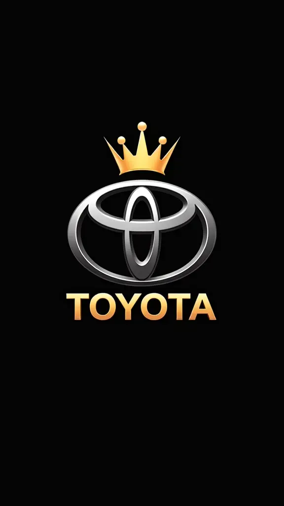 شعار شركة تويوتا مصنوع من الذهب يعلون تاج فضي والخلفيه سوداء