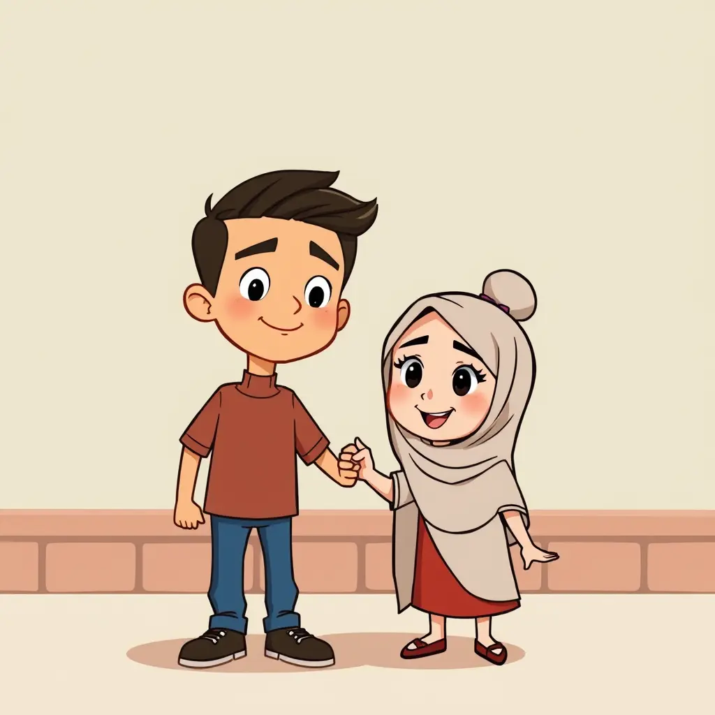 صورة لعدنان من افلام كرتون عدنان ولينا ؤسير ممسكا بيد ساندي بيل