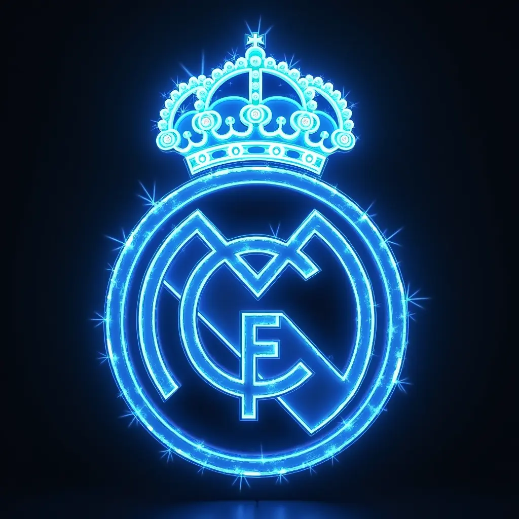 شعار نادي ريال مدريد مرسوم بالنار الزرقاء بتقنية 3D