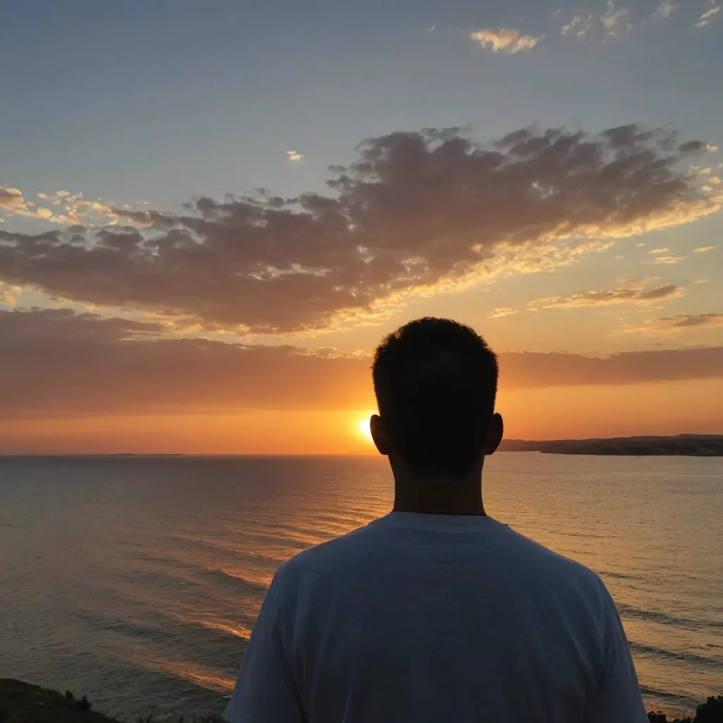رجل ينظر الى غروب الشمس