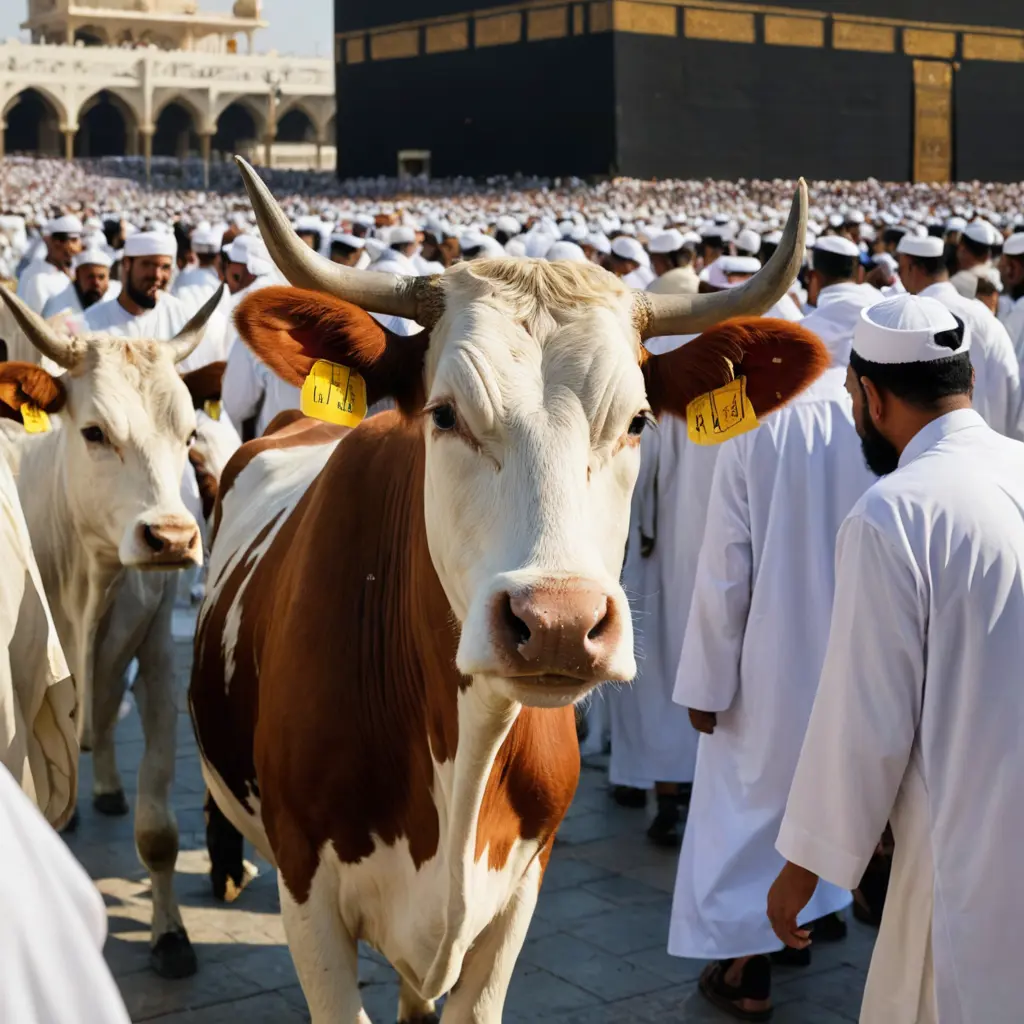 بقرة تحج في مكة المكرمة على قرونها من قرب الكعبة