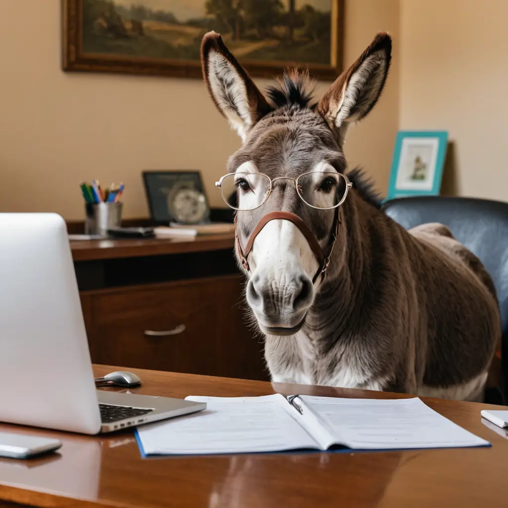 حمار يلبس نظارة خلف مكتب