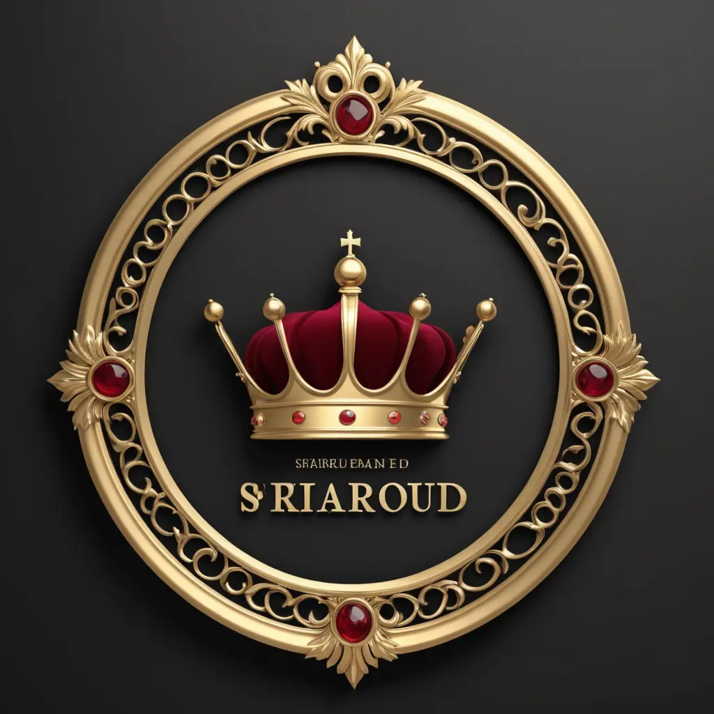 شعار التاج الكامل الخمري3D،،بأسم شراود باللون الابيض  والخمري 3D،بأطار ذهبي دائري،بخلفية سوداء