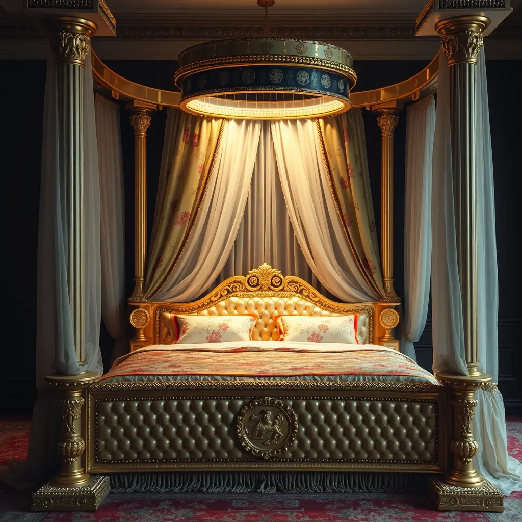 الحجلة هي سرير فاخر مصنوع من الذهب أو اللؤلؤ، مزين بستائر حريرية شفافة ومزخرفة بألوان ملكية كالذهبي والأحمر، تنسدل من أعمدة أو إطار دائري فوق السرير، مع إضاءة ناعمة تضفي عليه إشراقة خافتة، ويُظهر مظهرًا ملكيًا يجمع بين الفخامة والراحة.