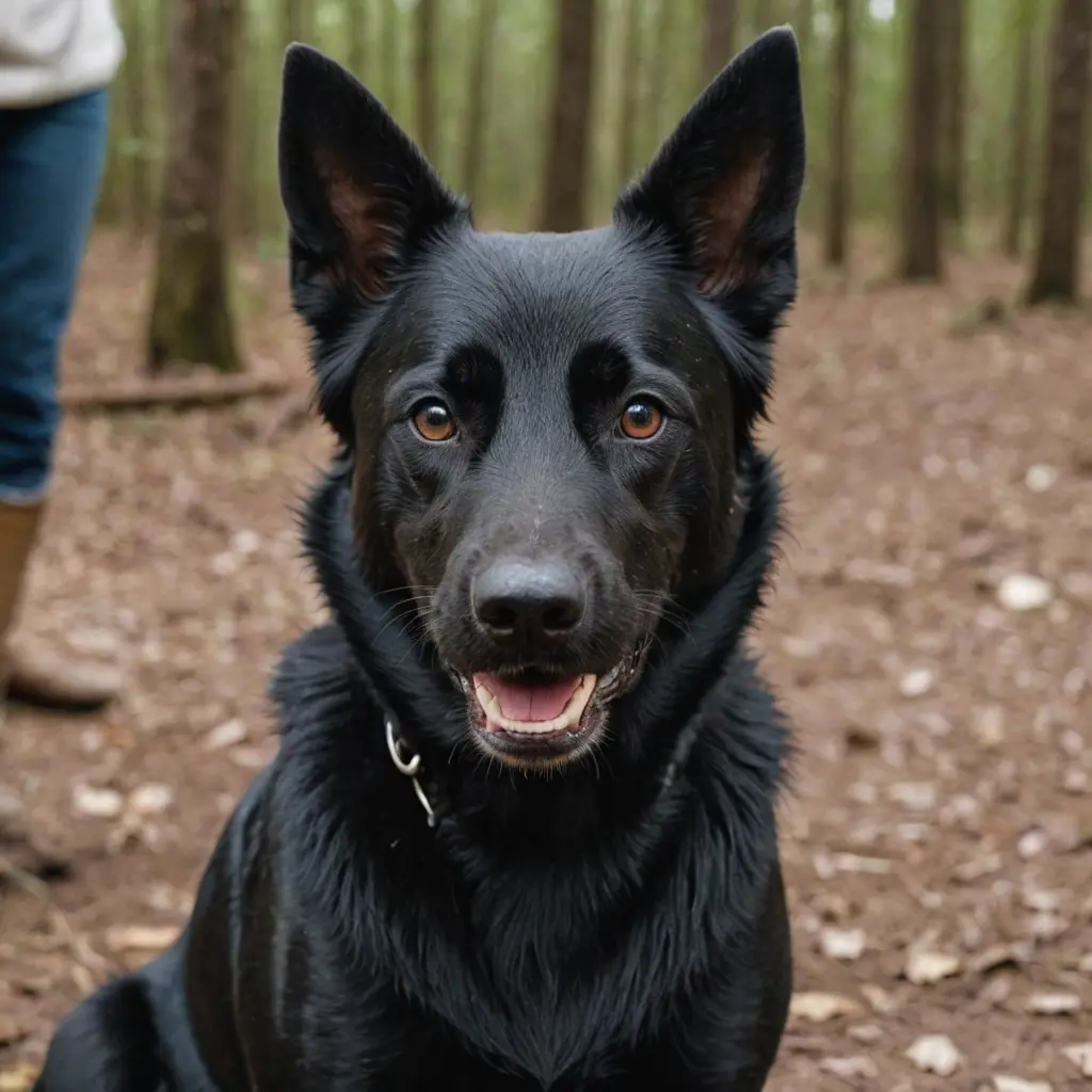 صوره كلب اسود اسنانه بيضاء ذات عيون بريئه يرتدي ملابس متسخه