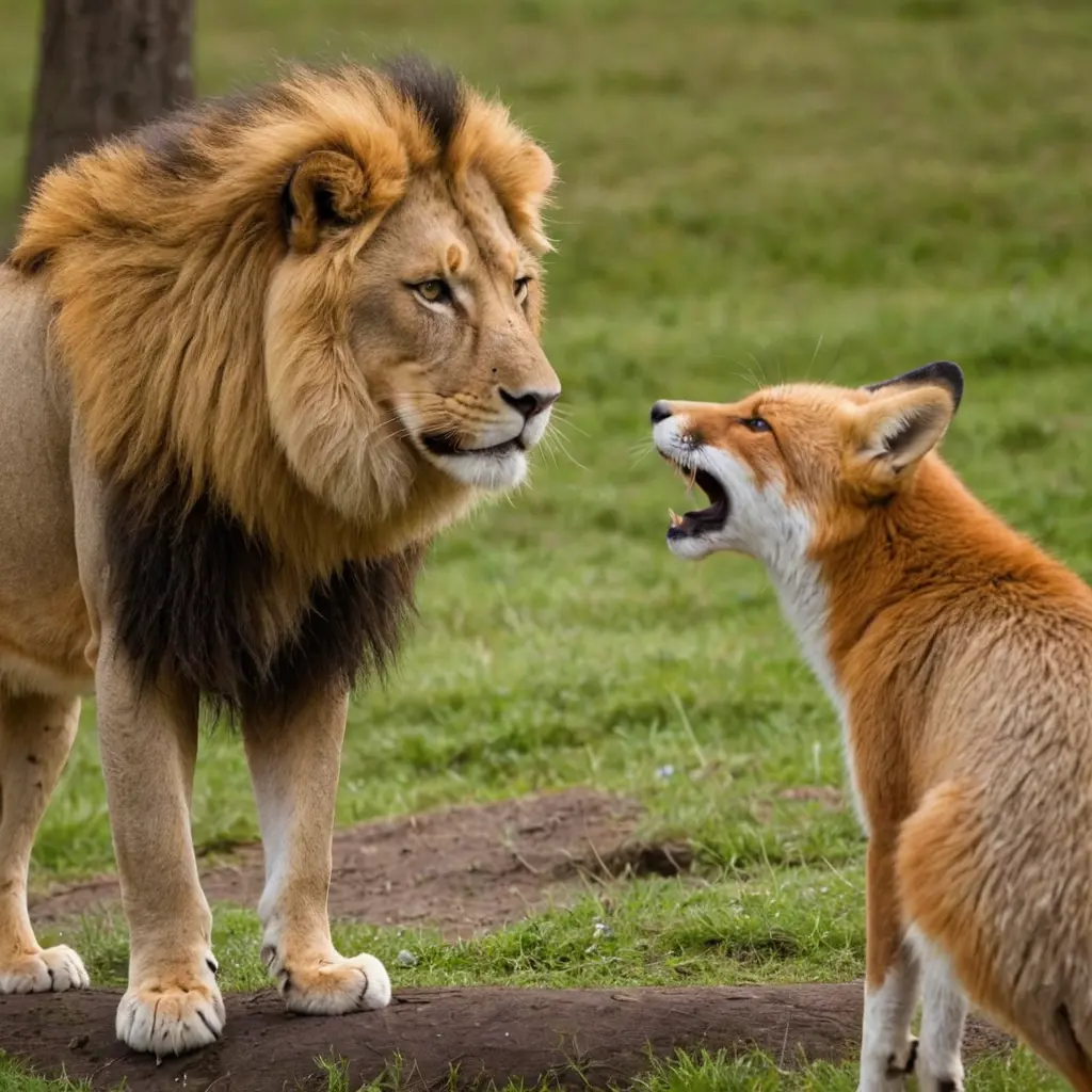 صورة أسد يتكلم مع ثعلب