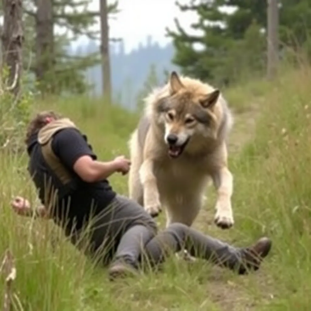صورة ذئب يهاجم رجل