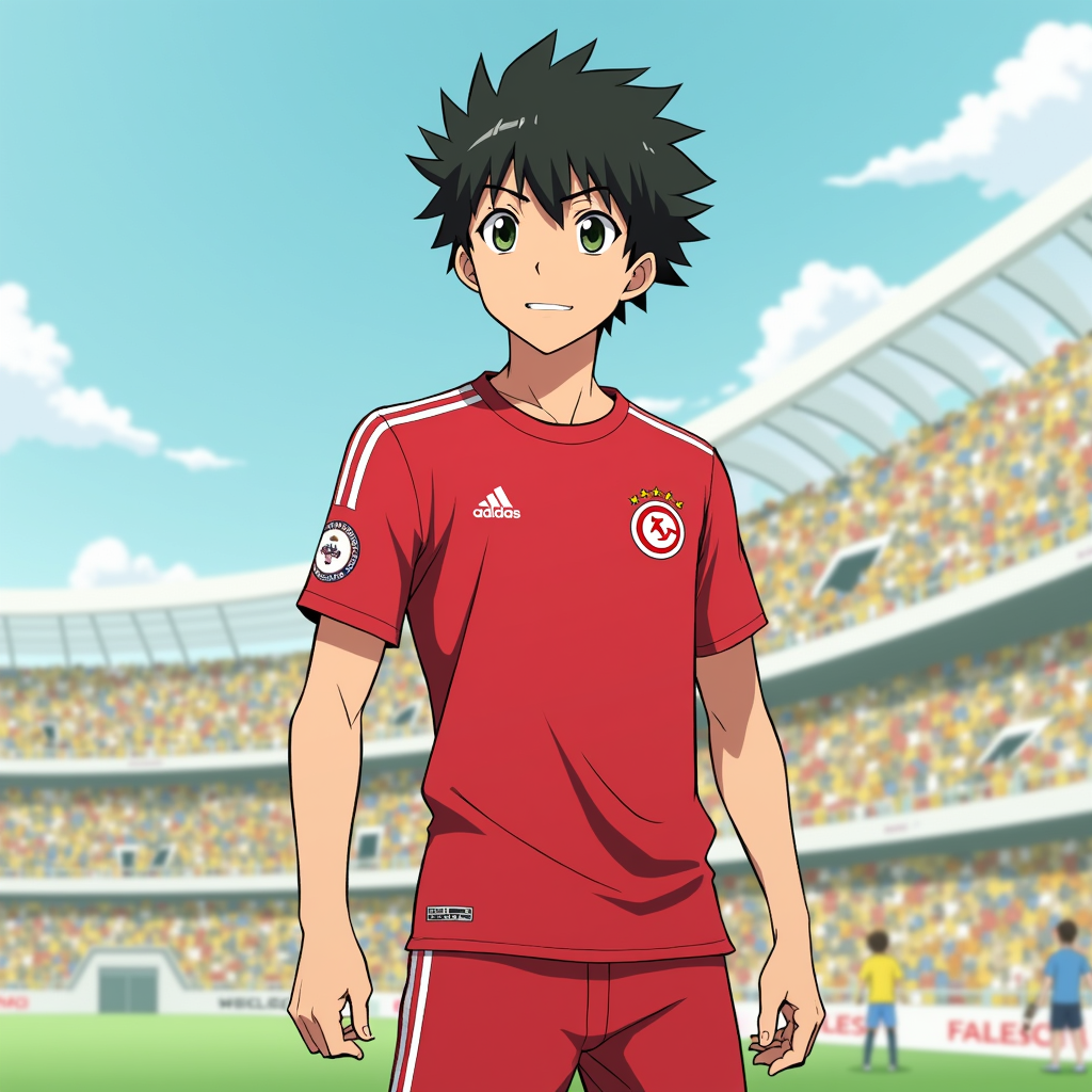 صورة  لاللاعب ناغي سينشيرو من أنمي بولوك لكرة القدم و هو يرتدي قميص المنتخب التونسي