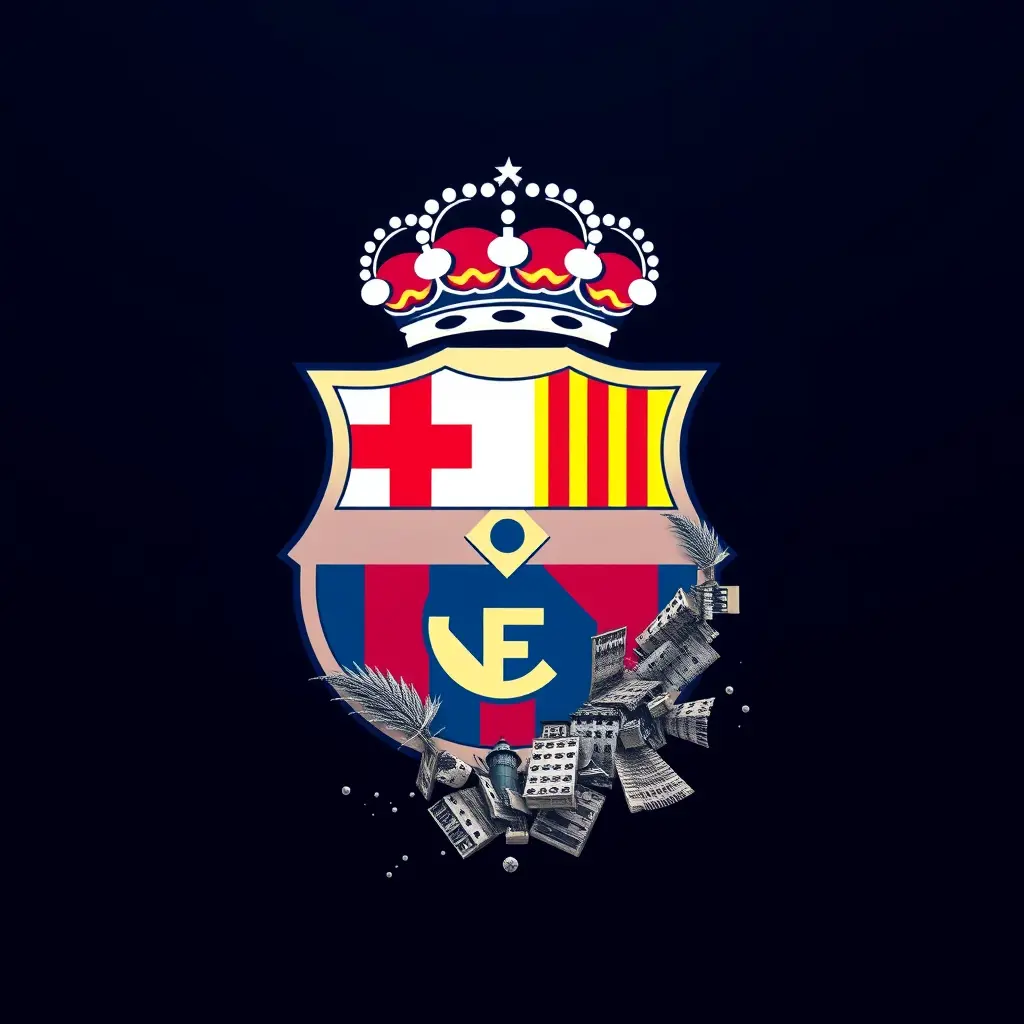 شعار فريق برشلونة فوقه تاج ريال مدريد وبرشلونة محطمة