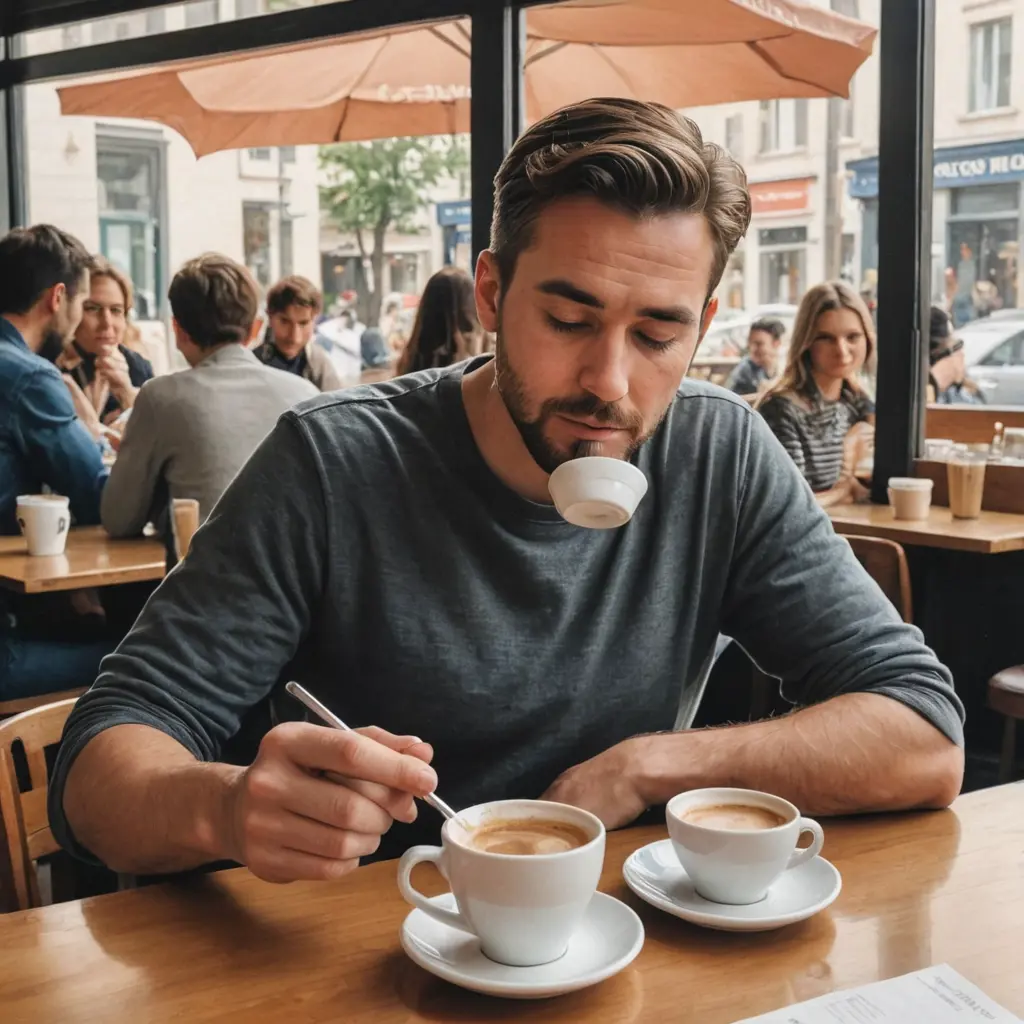 رسمة لرجل يشرب القهوة بالمقهى