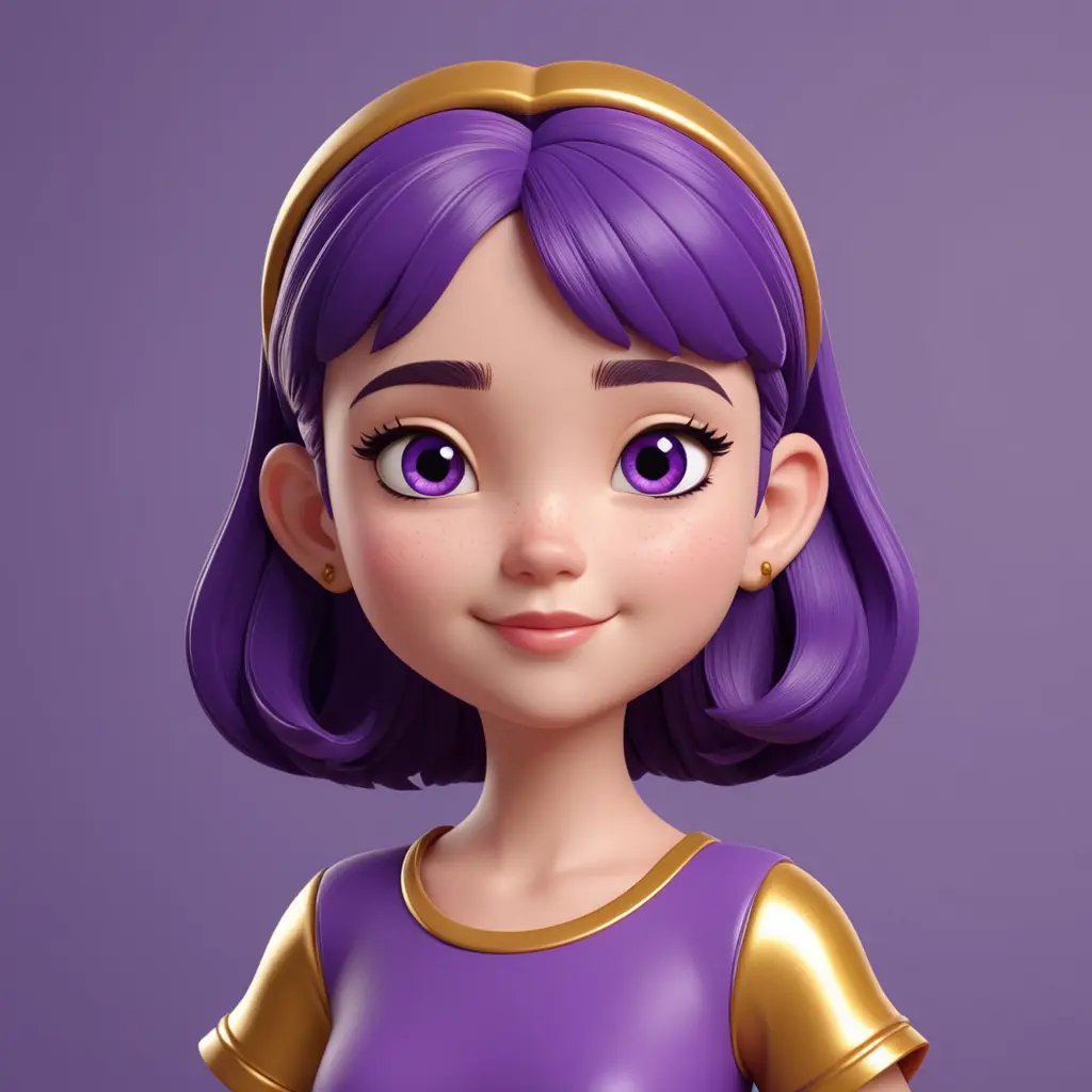 بنت شخصية كرتونية بالون البنفسجي وخلفية بنفسجية و ذهبية تصميم 3D