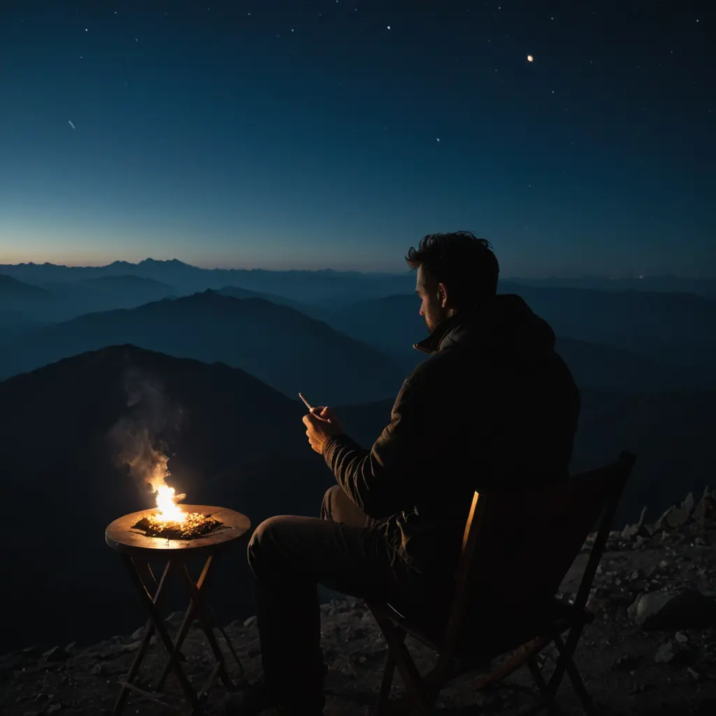 صوره لراجل ماسك سيجاره وقاعد على كورسى فى الظلام على اعلى قمه