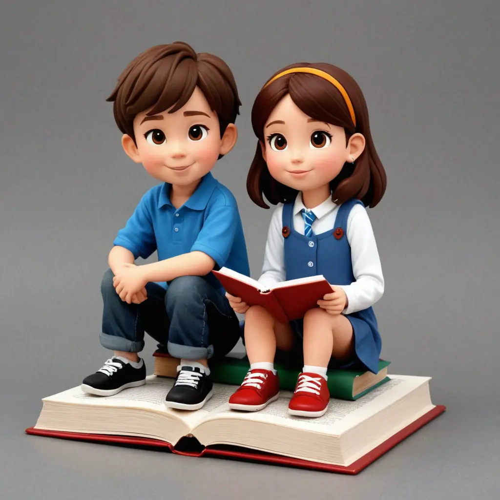 اريد صوره كرتونيه الى طفل وطفله جالسان على كتاب