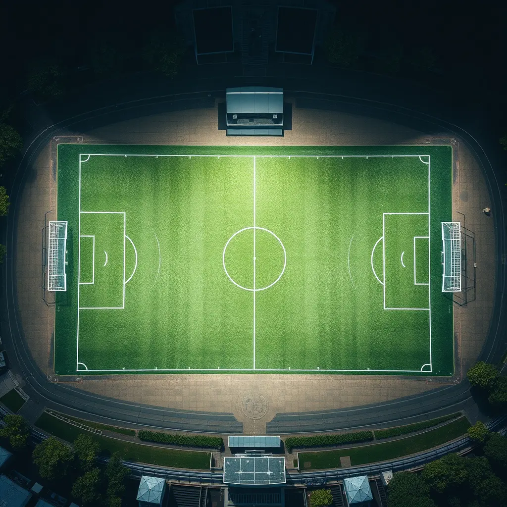 صوره ارضيه ملعب كره القدم مصوره من الاعلى تبين في الصورة كاملة
