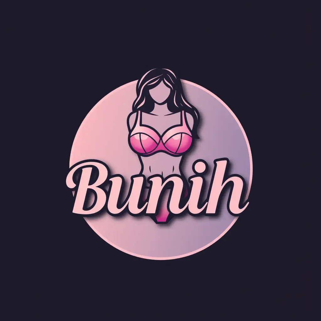 Generate a detailed  logo in 2d for a company named 'Bunih'  . The logo should prominently feature Women's and lingerie which uses gradient colors palette.