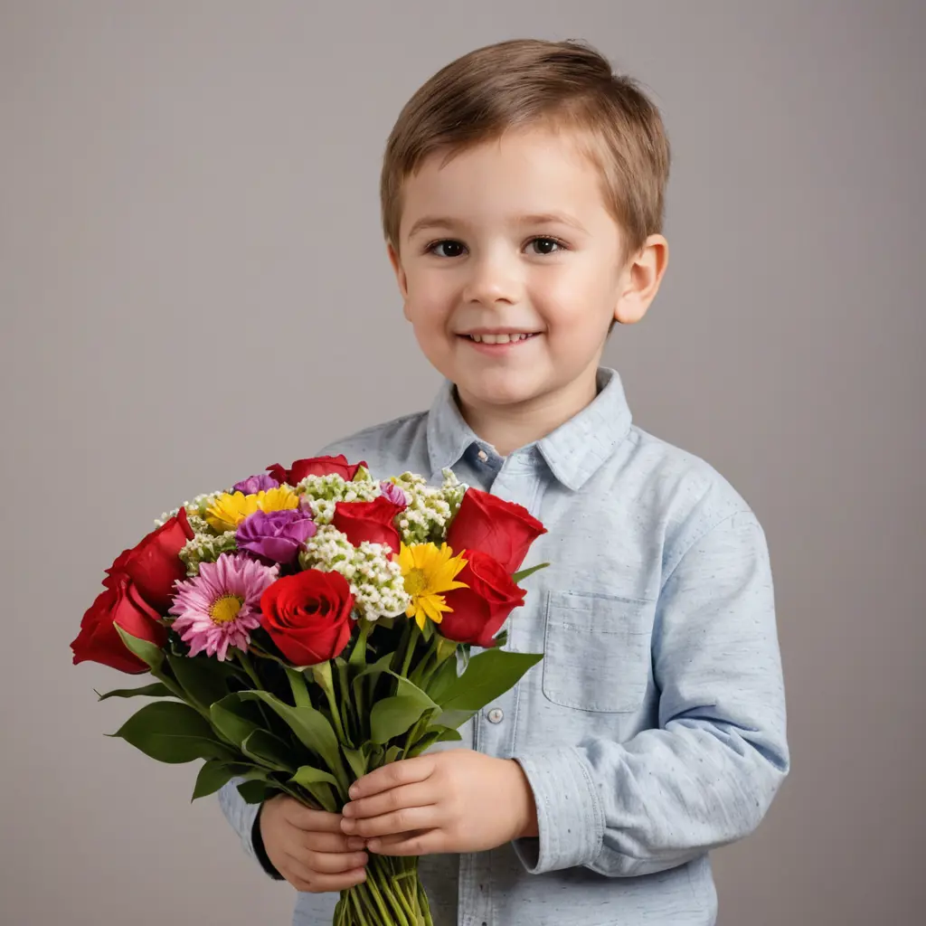 طفل ذكر يحمل باقة ورد ويقول ليلة سعيدة