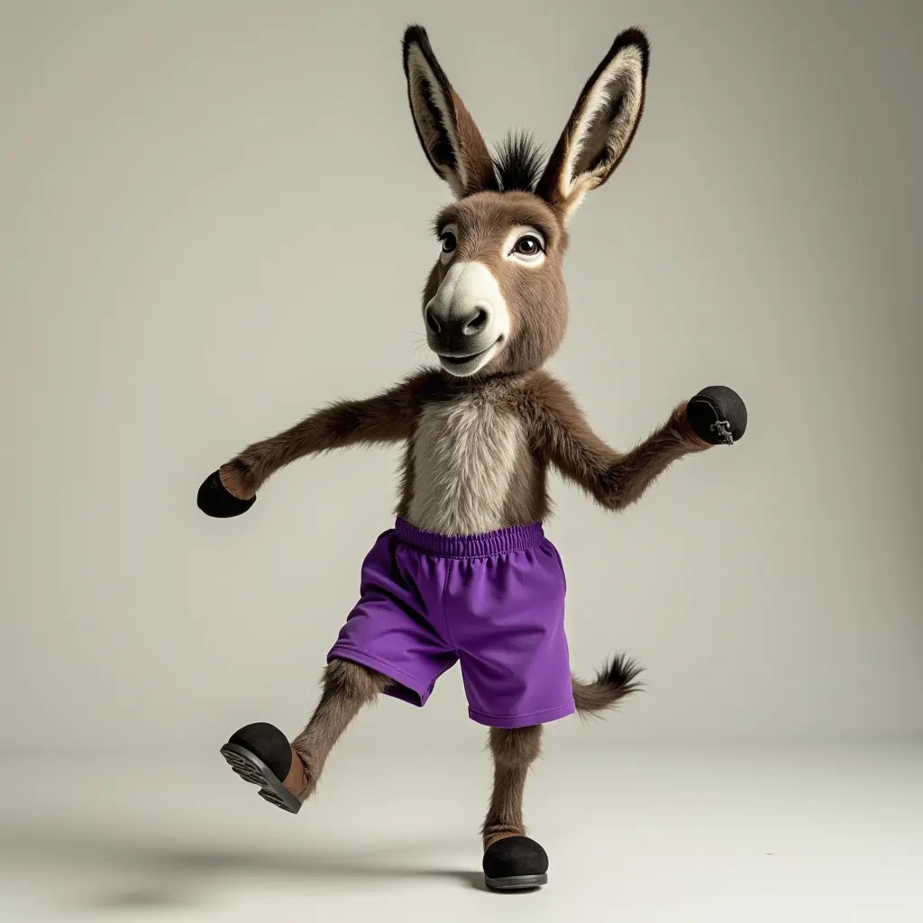 حمار يرقص يرتدي شورت لونه بنفسجي