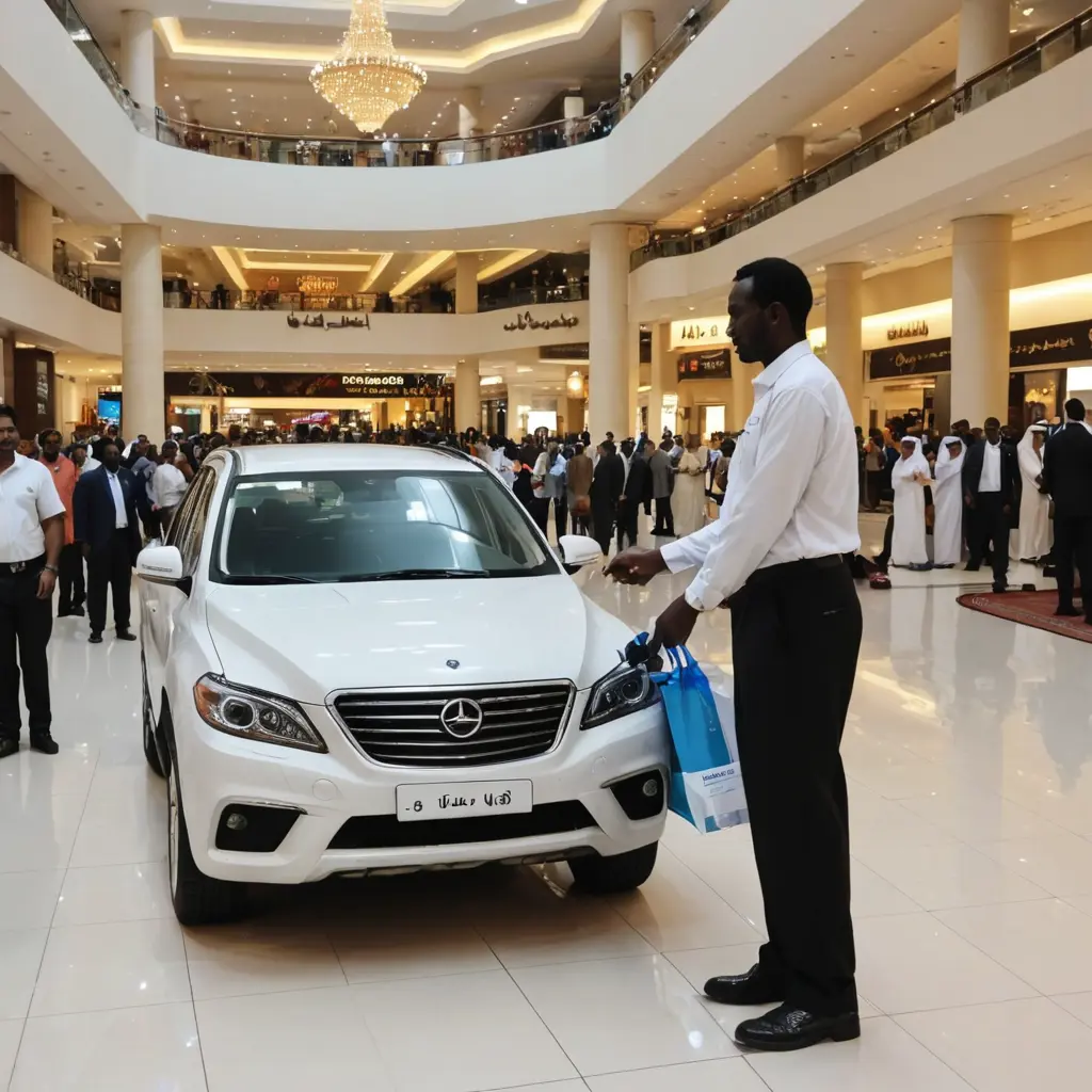 تكريم عامل سوداني في احد المولات التجارية وتسليم له سيارة هدية في السعوديه