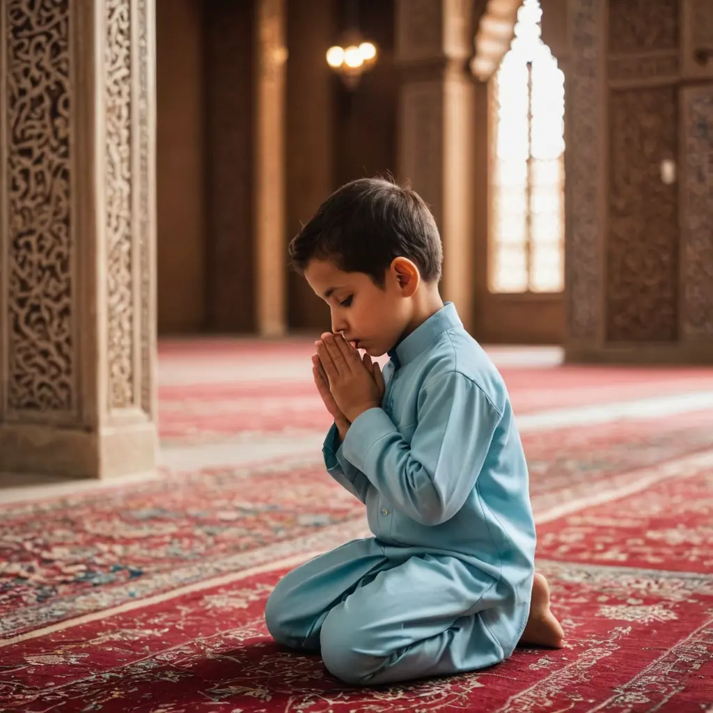 صوره لطفل في المسجد يدعي ربه