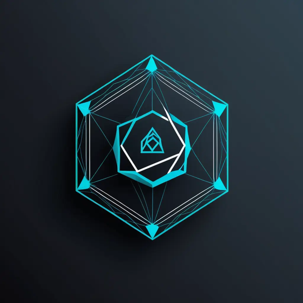 A crisp geometric logo for a blockchain company, shows complexity