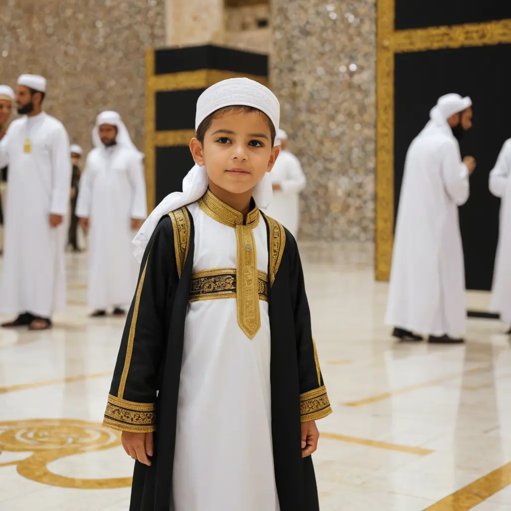 طفل صغير يرتدي زي إسلامي في الكعبة المشرفة