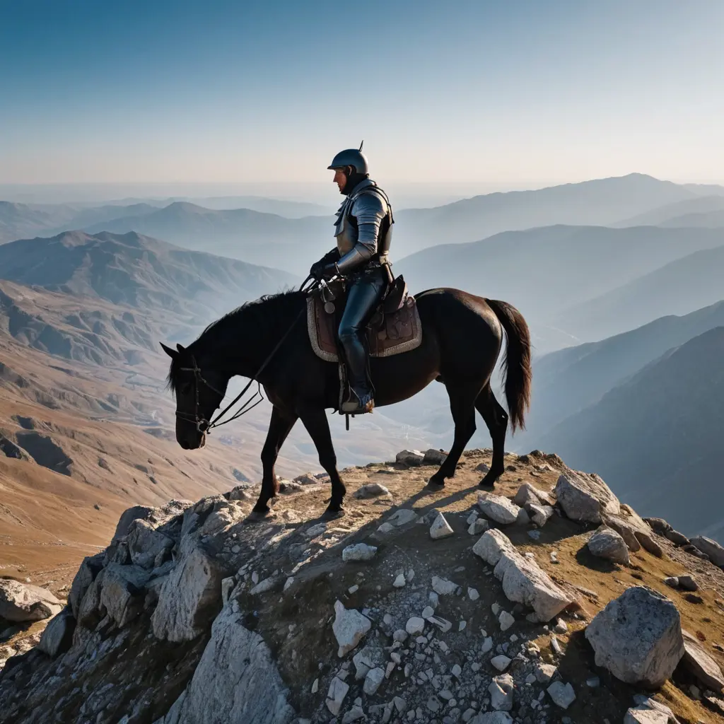 فارس على حصان أسود في اعلى قمة جبلية في الجزائر