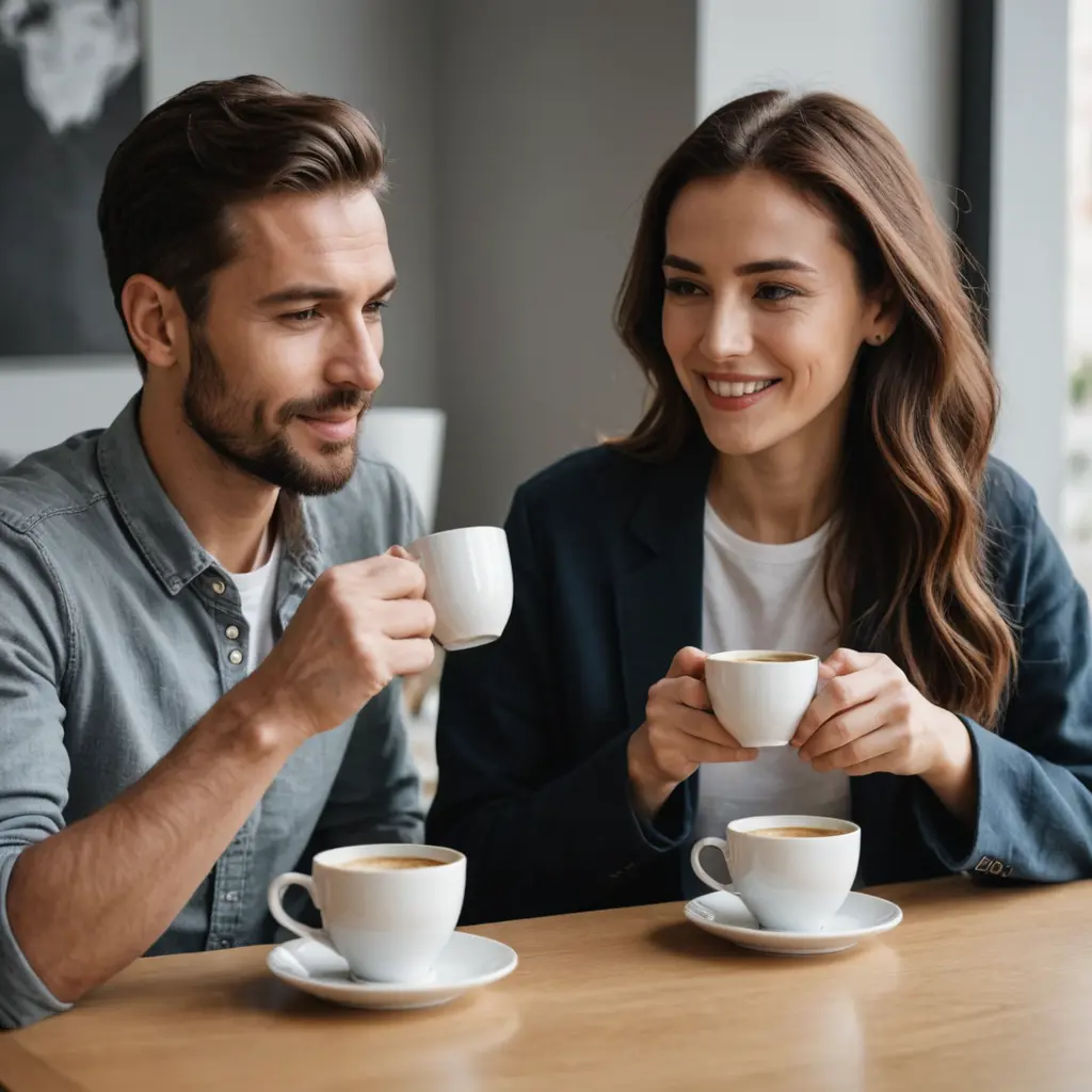 رجل وامرأة يشربون قهوة  بفنجان واحد