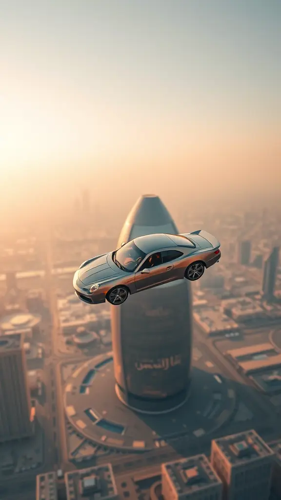 سيارة تطير فوق مدينة الرياض