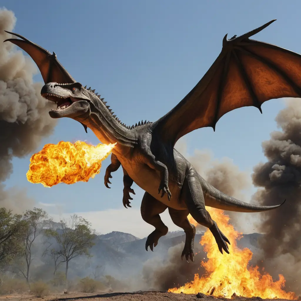 ديناصور طائر يخرج نار من فمه