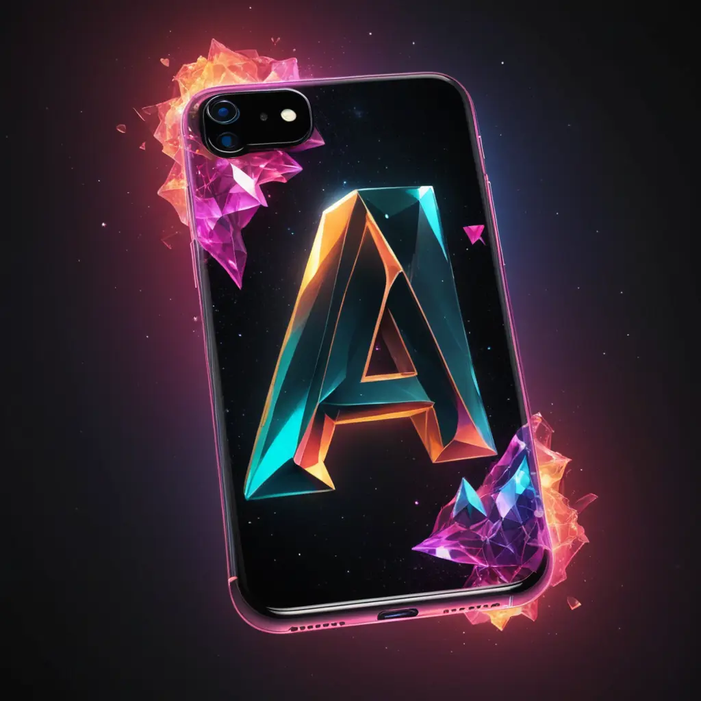 خلفية هاتف بحرف A هندسي الشكل مصنوع من الكريستال الملون المضيئ و في الفضاء