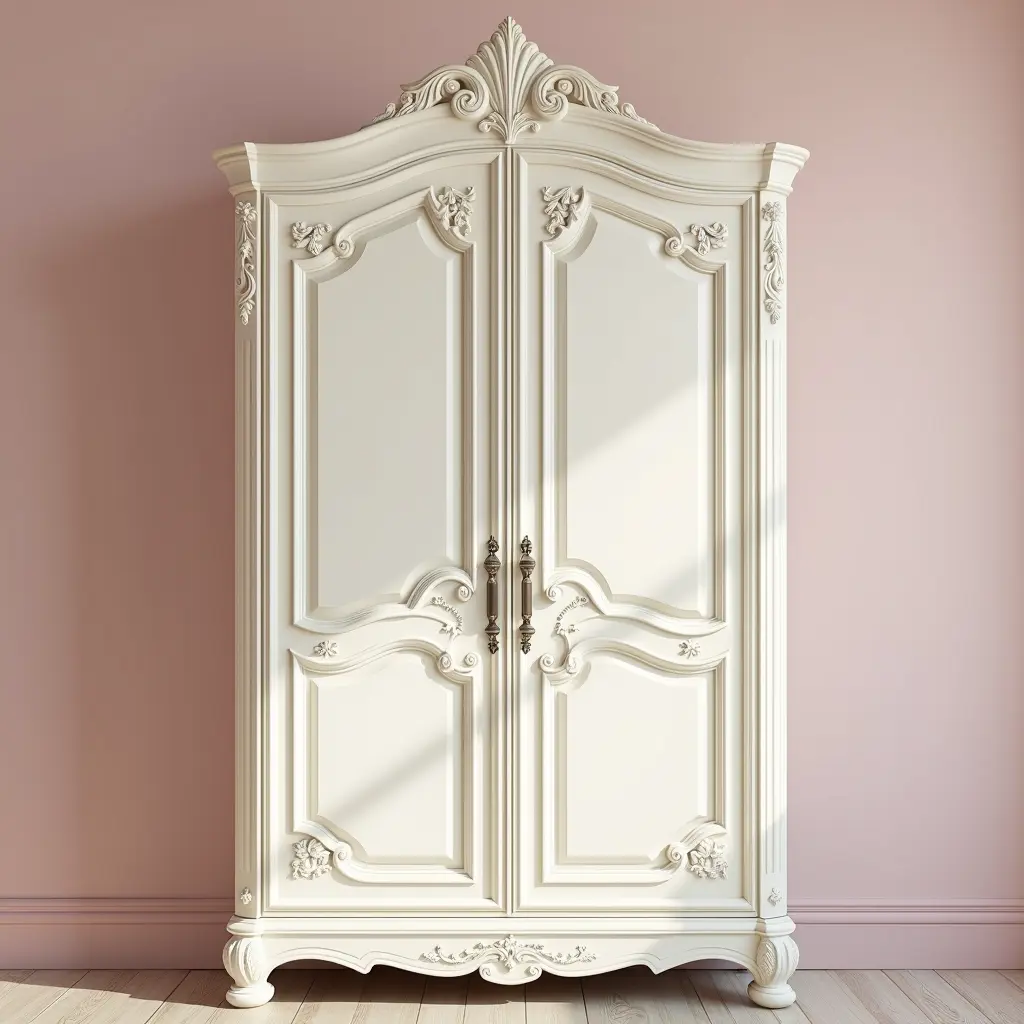 دولاب غرفه نوم بعرض 1.5 متر ب إطار او تاج جميل إما نقشة او ديكور  بالجزء العالي منه  والون  زهري وابيض فاتح فقط