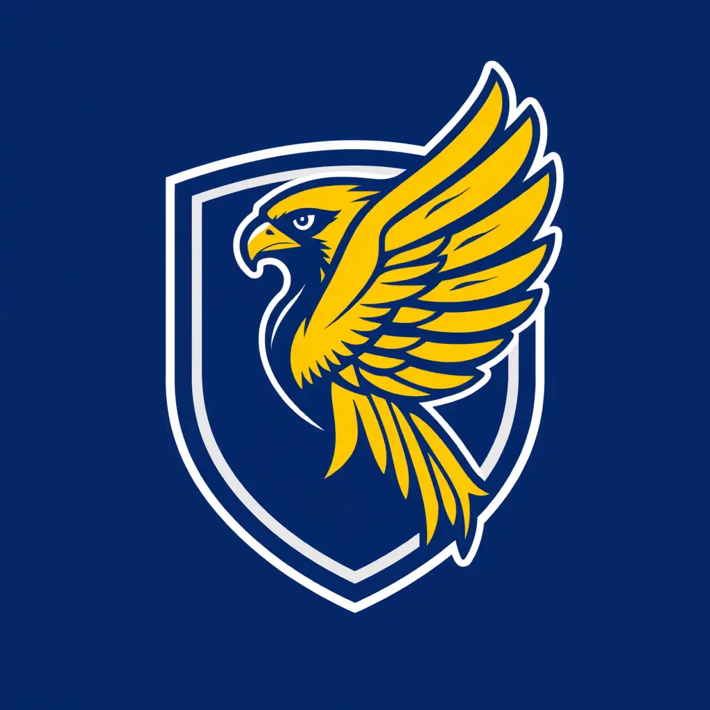 شعار رياضي فيه درع و صقر بالألوان الاصفر و الأزرق