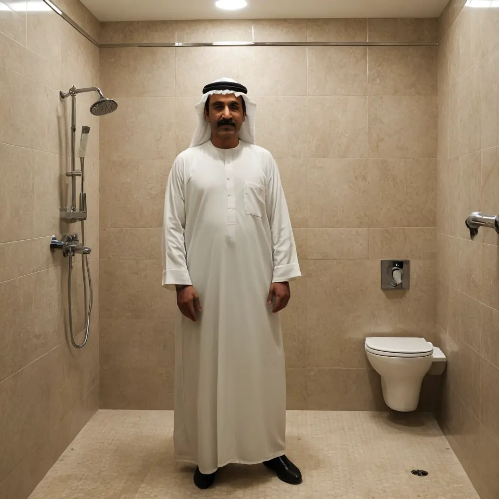 رجل خمسيني سعودي لابس في حمام الرجال يتحمم