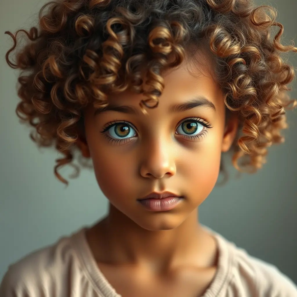 فتاه ذات شعر كيرلي لون البشرة حنطية عينان عسلي