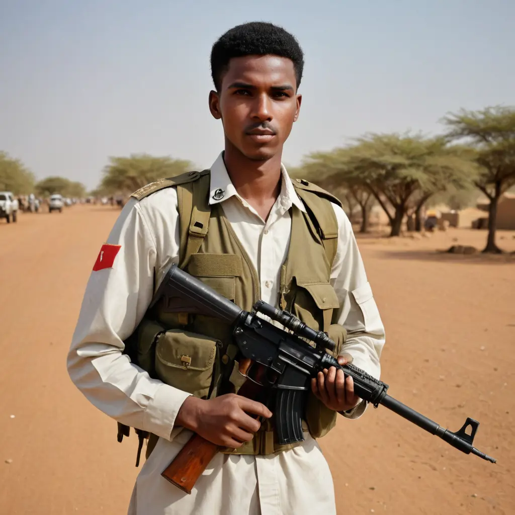 صوره شاب سوداني ابيض وسيم يحمل سلاح وهو يلبس زي الجيش السوداني