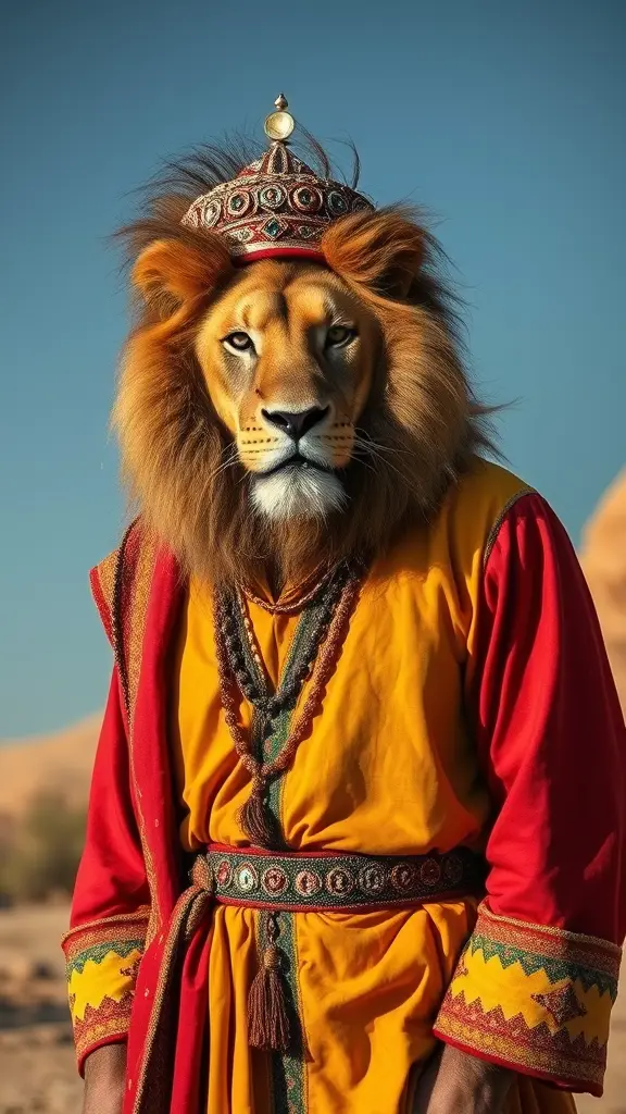 اسد حقيقي يلبس اللباس المغربي التقليدي بالقرب من صومعة حسان