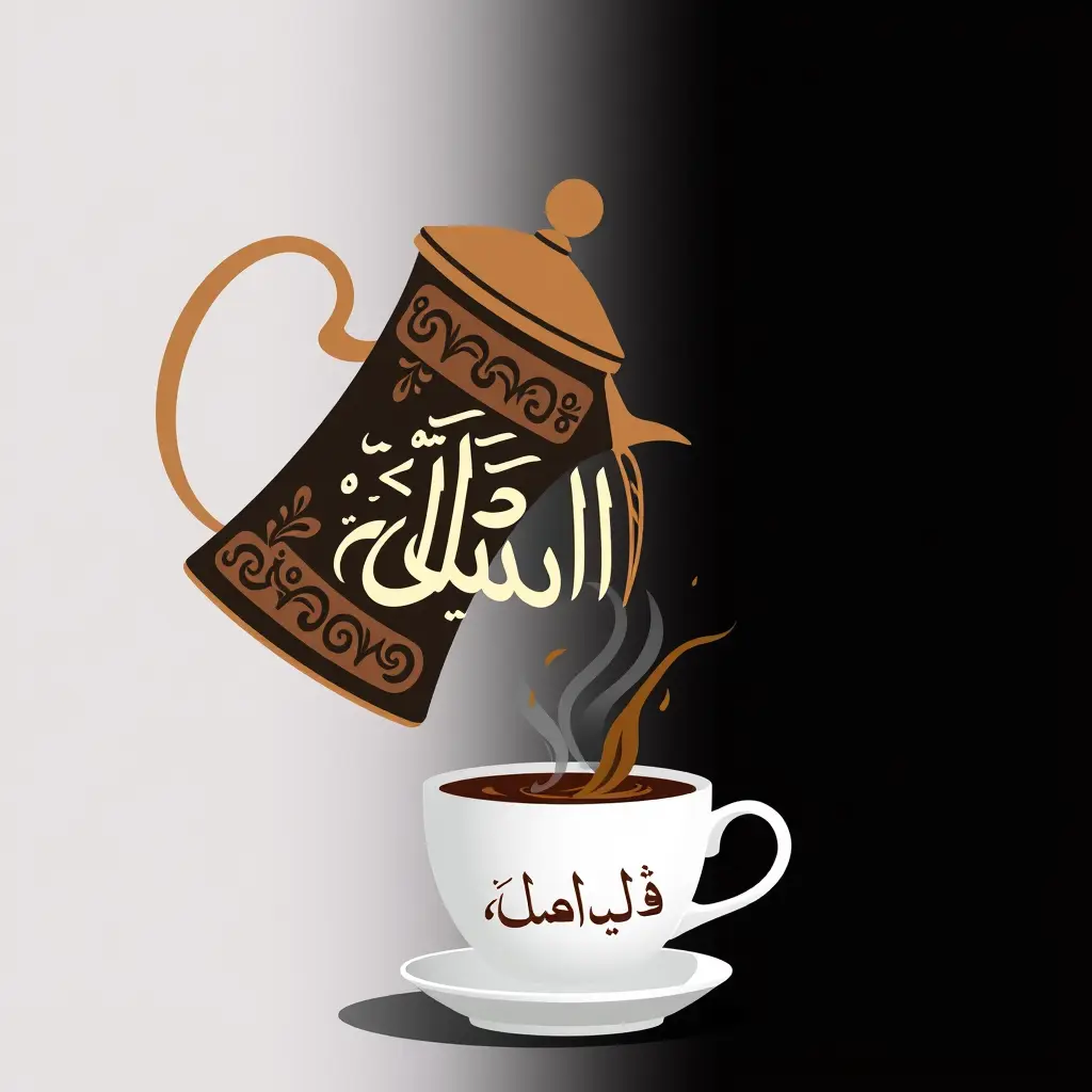 أريد تصميم صورة دله قهوة عربية على ان يكون جسم الدله نفسه عبارة عن كلمة الخليل باللغة العربية والدلة تصب القهوة فى فنجال عربي
