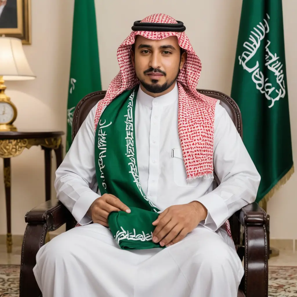 رجل سعودي جالس على كرسي بشماغ سعودي اين العمل