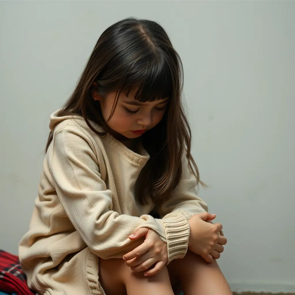 صور بنت جالسه تبكي
