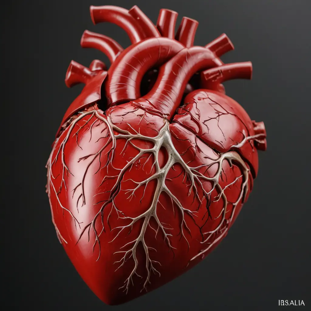 صورة قلب حقيقي وفيه شرايين لونه احمر ومحفور عليه اسم Israa