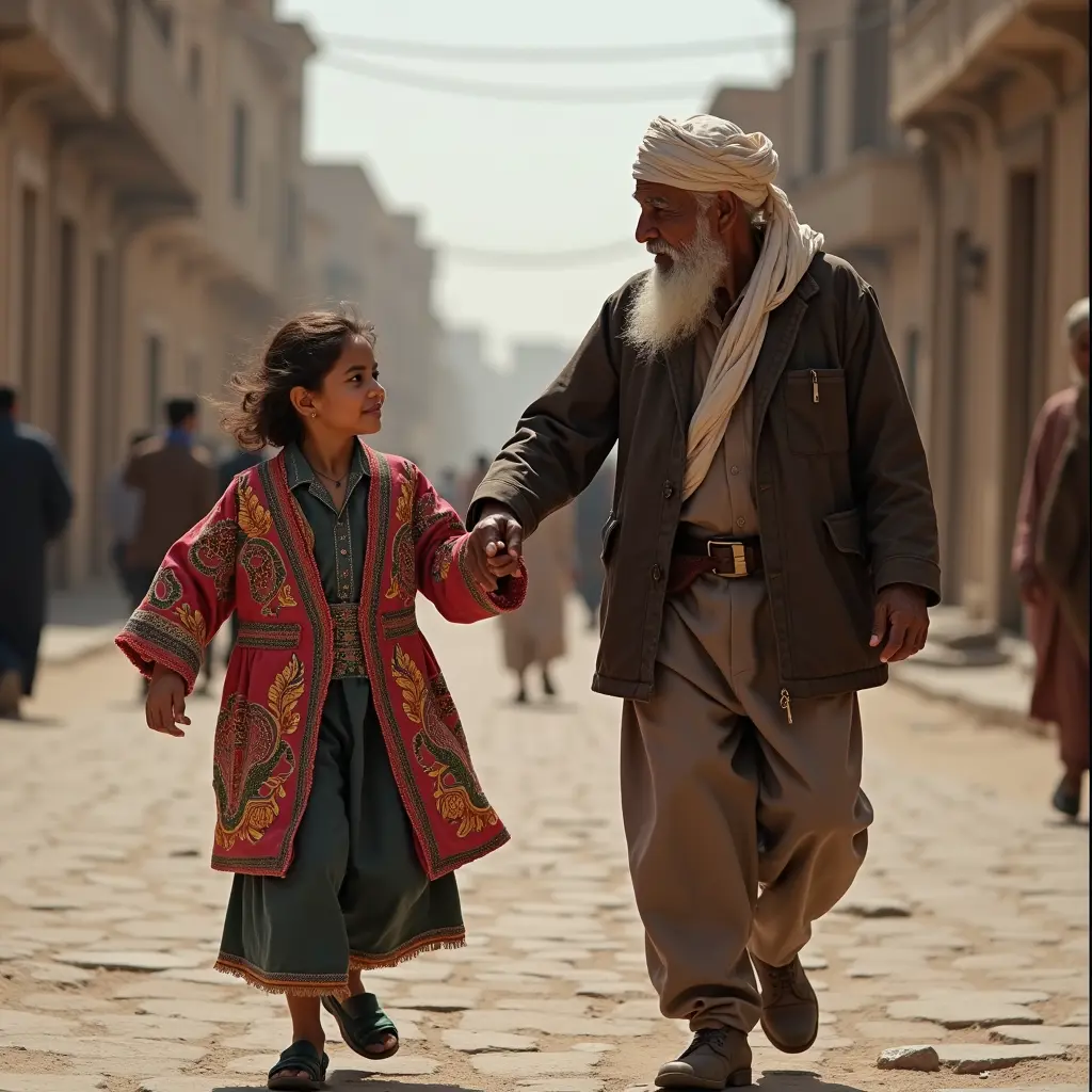 بنت يمنيه في عمر المراهقه ترتدي الستره الصنعانيه ترقص مع شايب يمني في شوارع صنعاء القديمه